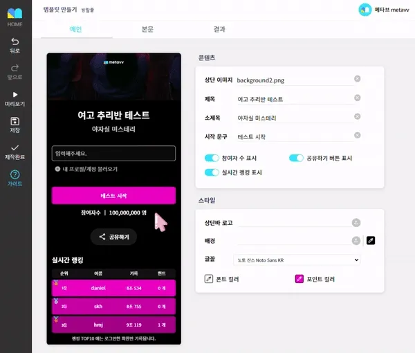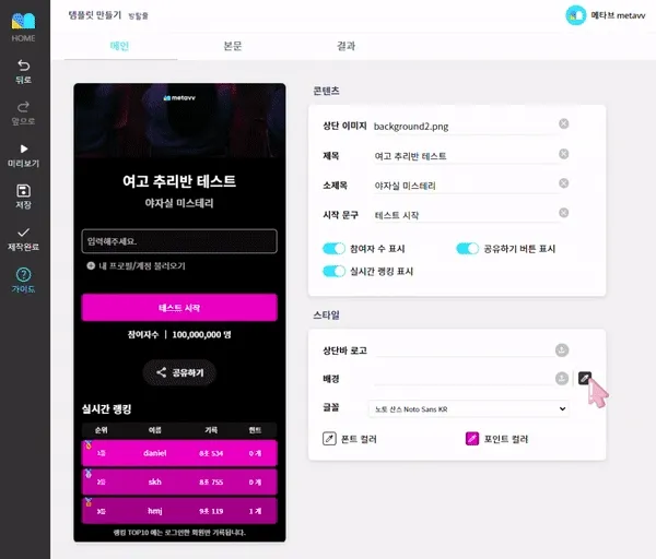 주요 버튼과 TOP3 랭킹 영역 등 이목 집중이 필요한 영역의 컬러를 지정할 수 있어요.
