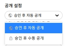 승인 후 수동 공개: 승인 요청 후 승인이 되면, 자동으로 콘텐츠가 ‘비공개’ 설정 됩니다.