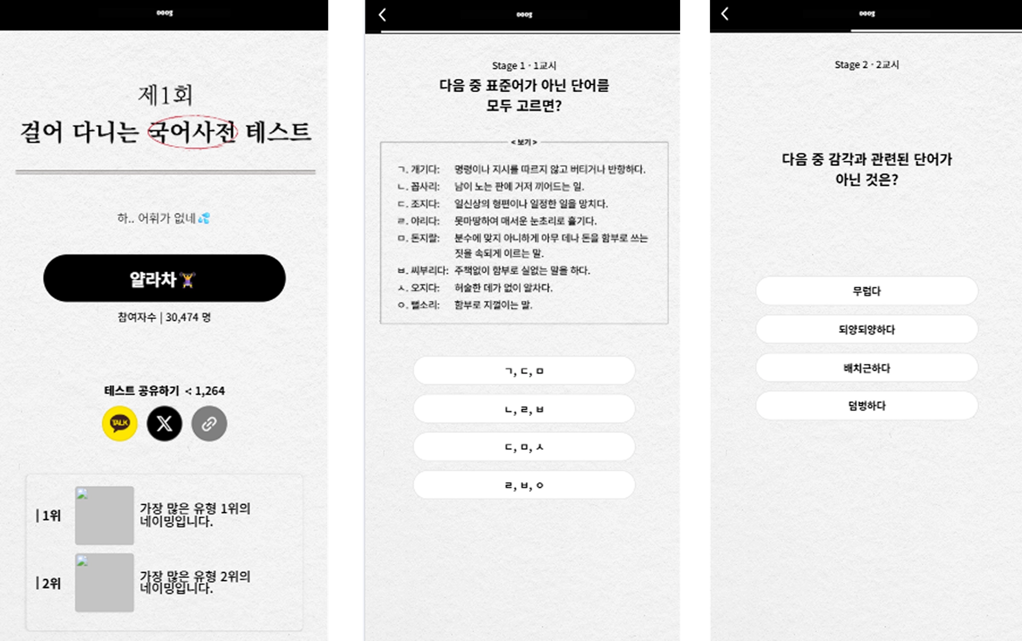 나의 어휘력을 체크하고 새로운 단어를 배울 수 있는 <걸어다니는 국어사전 테스트>에요.