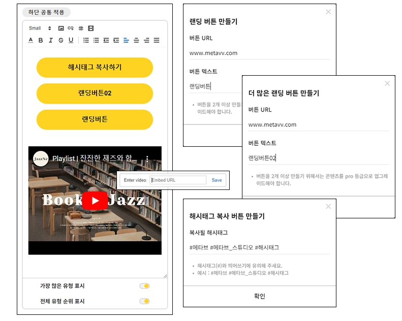 해시태그 : 원하는 해시태그를 적어넣으면 간편하게 클릭하여 복사할 수 있는 버튼이 만들어져요.