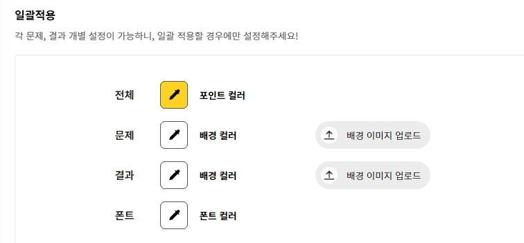 모든 문제와 결과 페이지의 배경이 적용됩니다. 이후 단계에서 각 페이지에 개별 설정도 가능하니, 일괄 적용이 필요한 경우에 설정해 주세요.