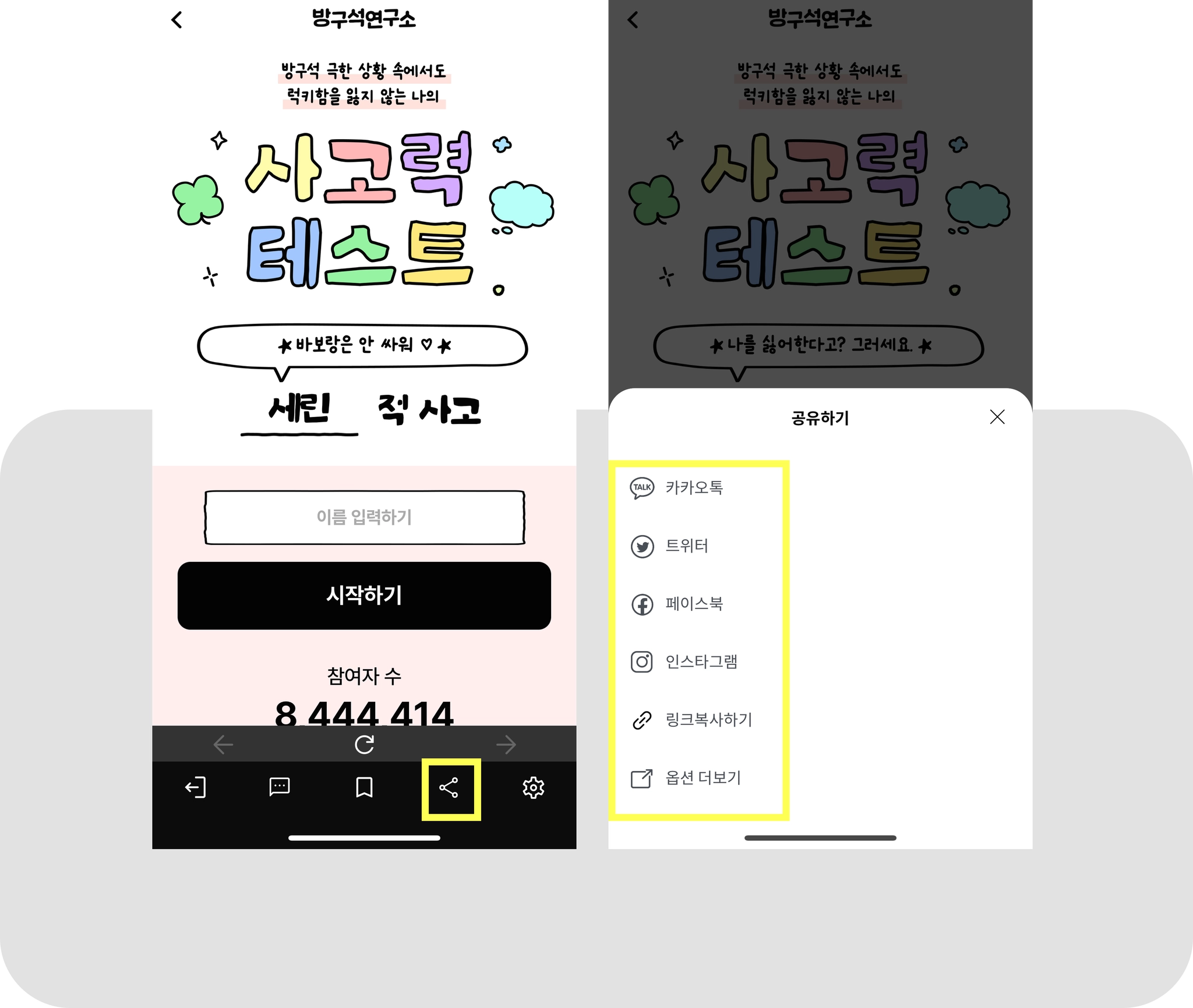 ’유형테스트’의 백미는 자신의 MBTI, 유형을 공유하는 것 아닐까요?