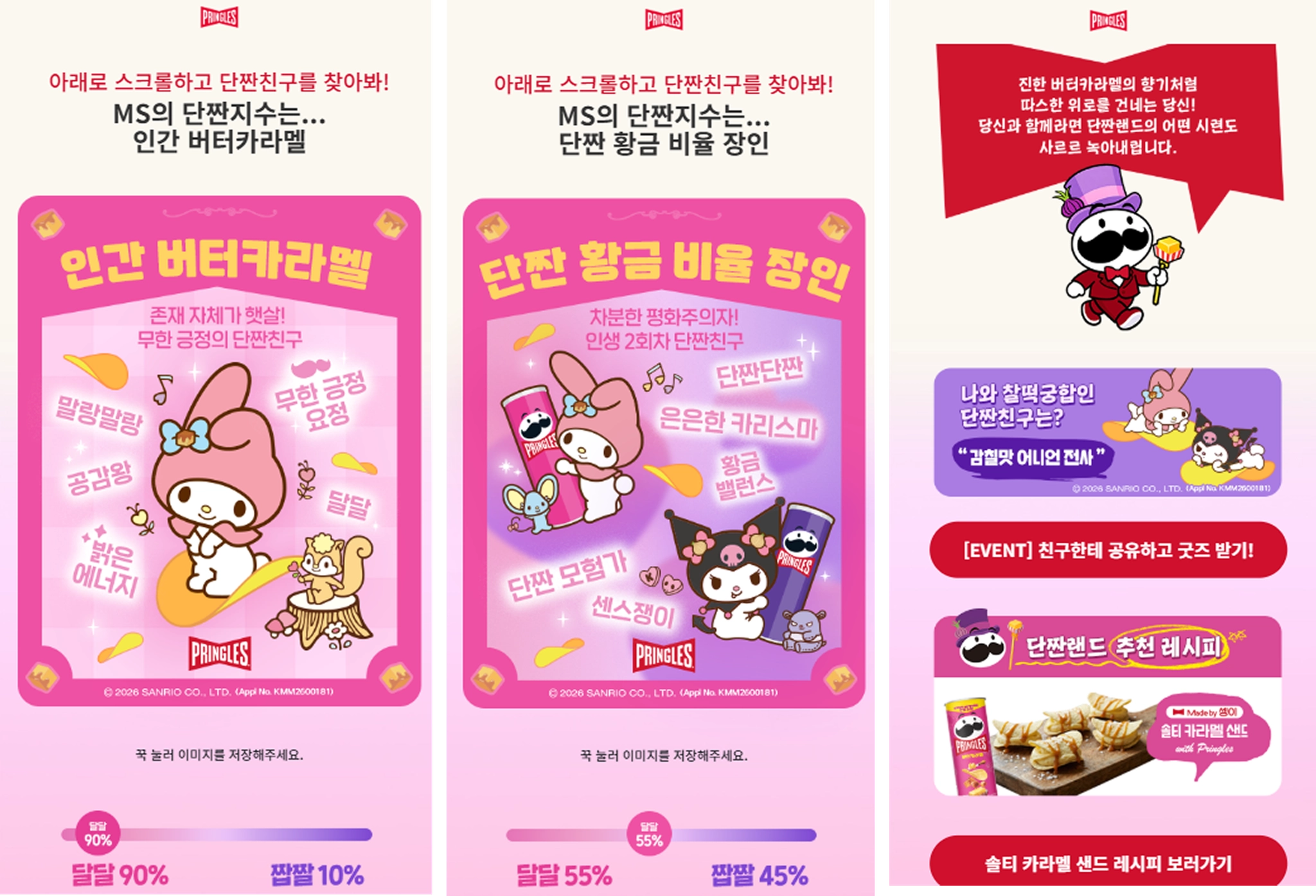 프링글스X산리오캐릭터즈 콜라보 홍보와 나와 맞는 프링글스를 추천해주는 콘텐츠를 기획했어요