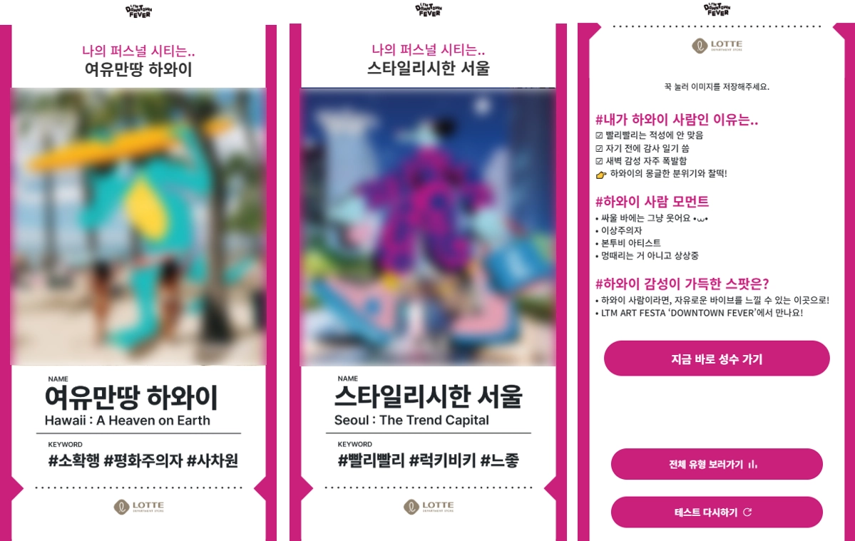 2030 고객들에게 롯데타운 명동을 알리기 위해 운영된 성수 LTM 아트 페스타 팝업스토어의 체험형 콘텐츠 중 하나로 기획되었어요.