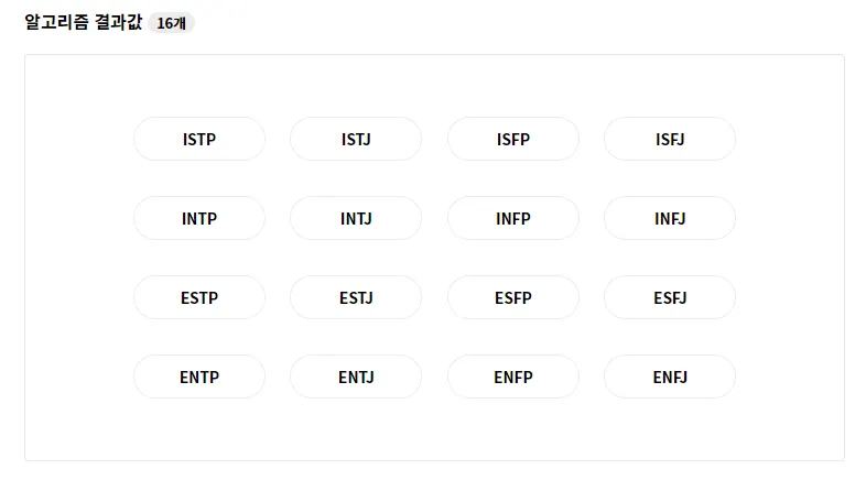 기본 지표 값은 MBTI에 맞춰 설정되어 있어요.