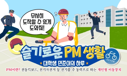 주인공 민준이는 안전하게 PM을 타고 학교에 등교할 수 있을까요?