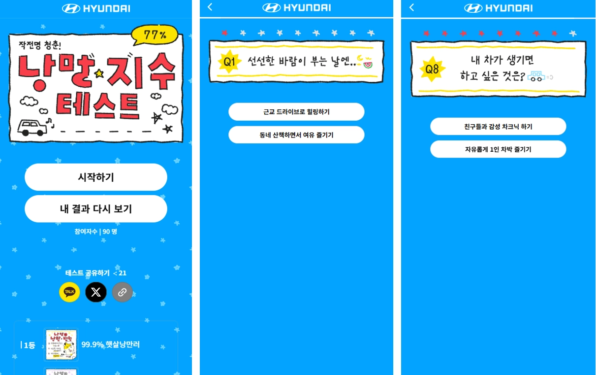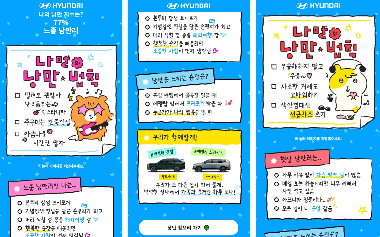 2030 고객들에게 현대자동차의 차종 추천을 위한 콘텐츠로 기획 되었어요.