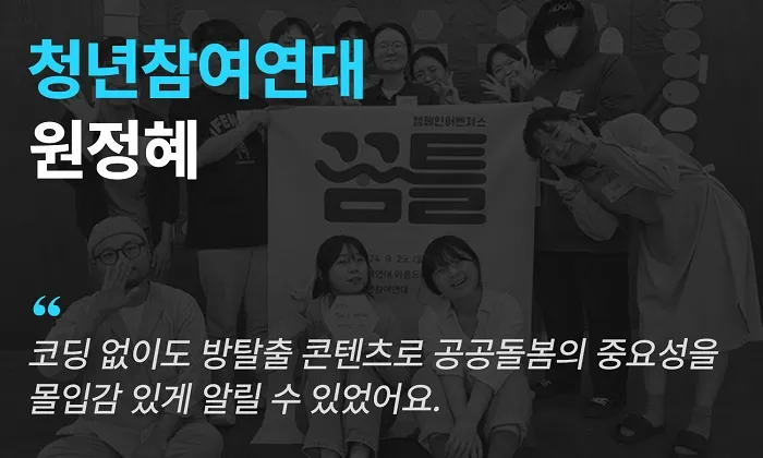 사회 이슈를 알리는 청년들과 함께 공공 돌봄의 중요성을 알리기 위해 <보미를 도와줘> 온라인 방탈출을 제작하셨는데요,