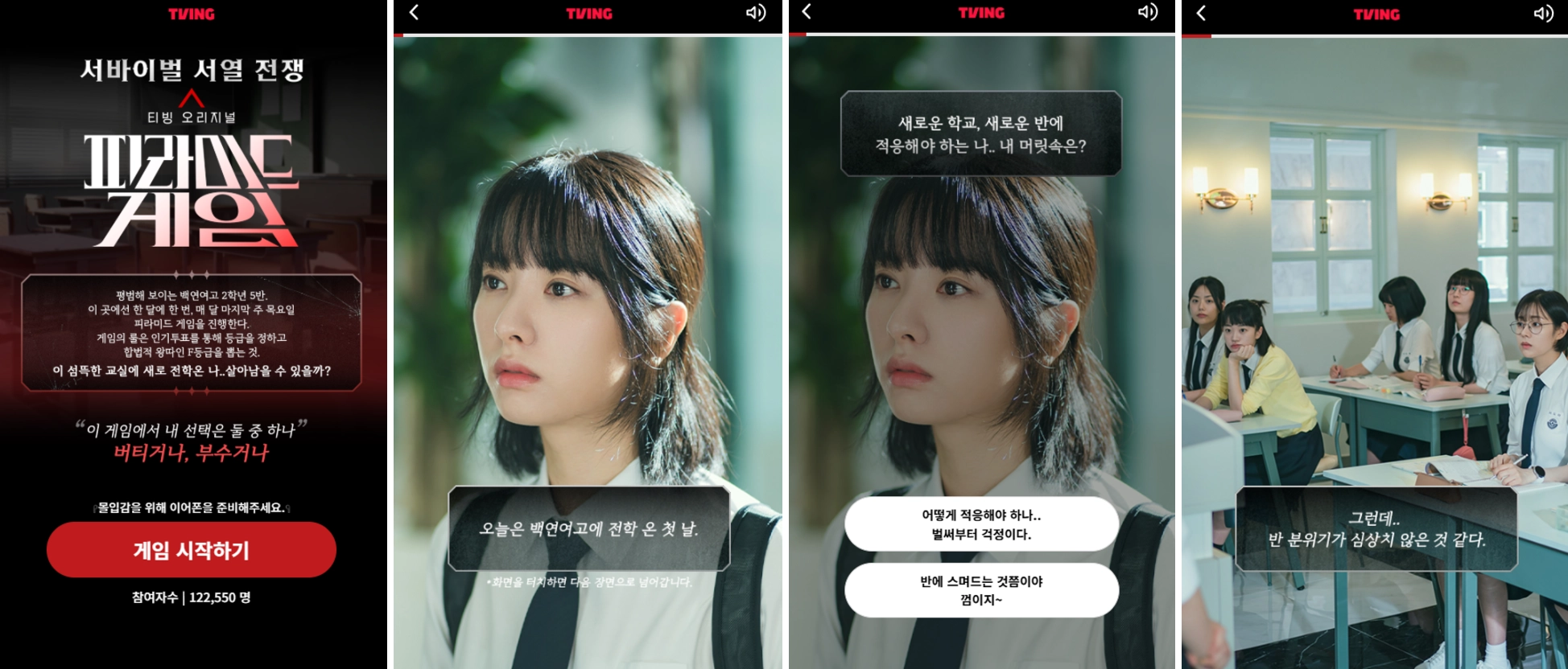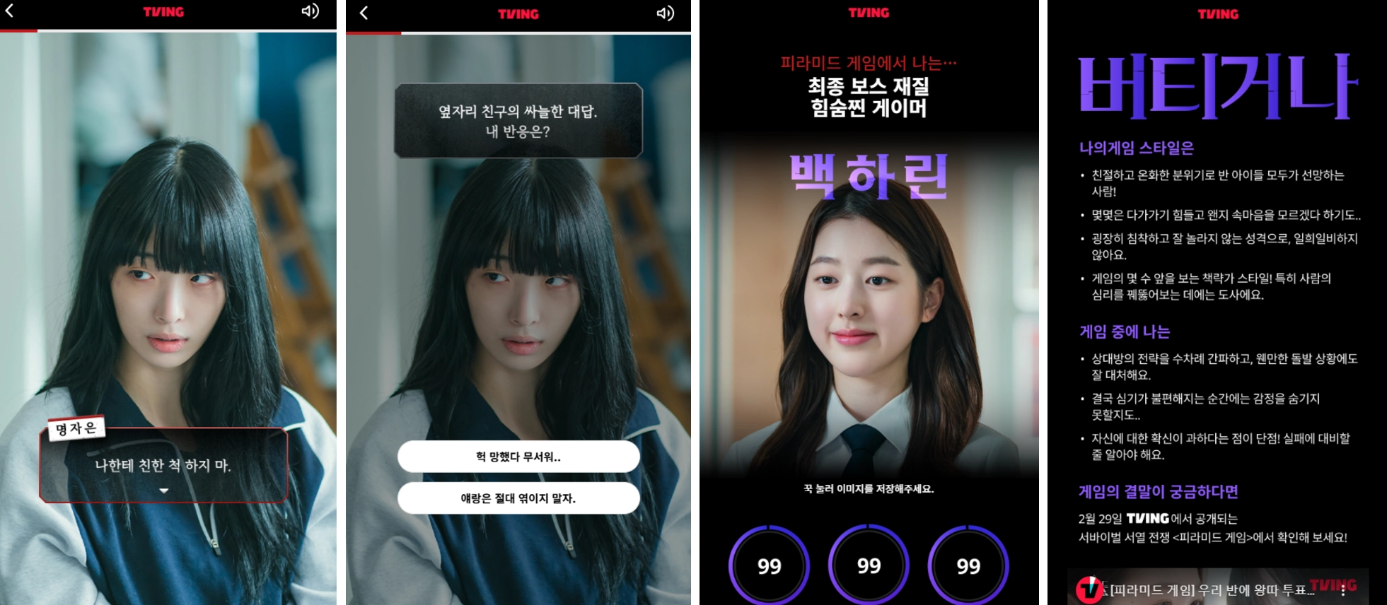 드라마 내의 게임인 ‘피라미드 게임’의 흐름을 알리고 이해도를 높일 수 있도록 기획되었습니다.