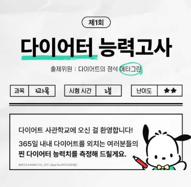 능력고사, 레벨테스트 등 정답이 있는 문제를 통해, 결과로 최종 점수에 따른 등급을 알려주는 콘텐츠 <퀴즈>