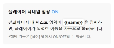 유형테스트와 퀴즈 템플릿을 활용하실 때에 플레이어 닉네임을 결과에 노출시킬 수 있게 됩니다.