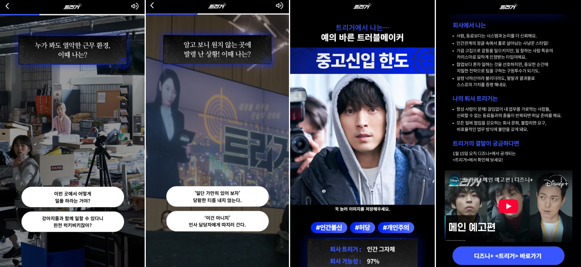 디즈니 플러스에서 개봉하는 드라마 <트리거>를 홍보하기 위해 만들어진 콘텐츠예요!