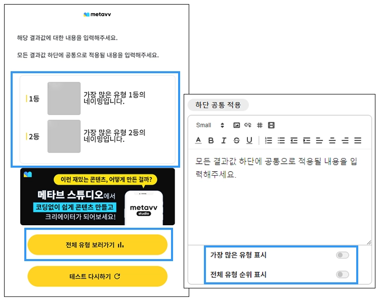 가장 많은 유형 표시 : 결과 값 비율 1위, 2위가 표시됩니다.