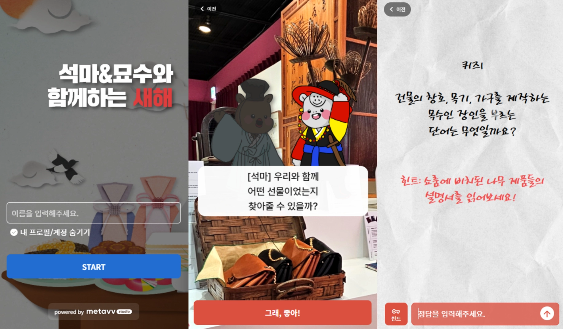 2025년에도 계속 국가유산체험센터를 운영할 계획이라, 계속 메타브 스튜디오를 이용해 방탈출 콘텐츠를 제작할 예정이에요. 사계절 시즌에 따라 시의성에 맞게 콘텐츠들을 수정하고 발전시켜서 미션 투어를 진행하려고 합니다.