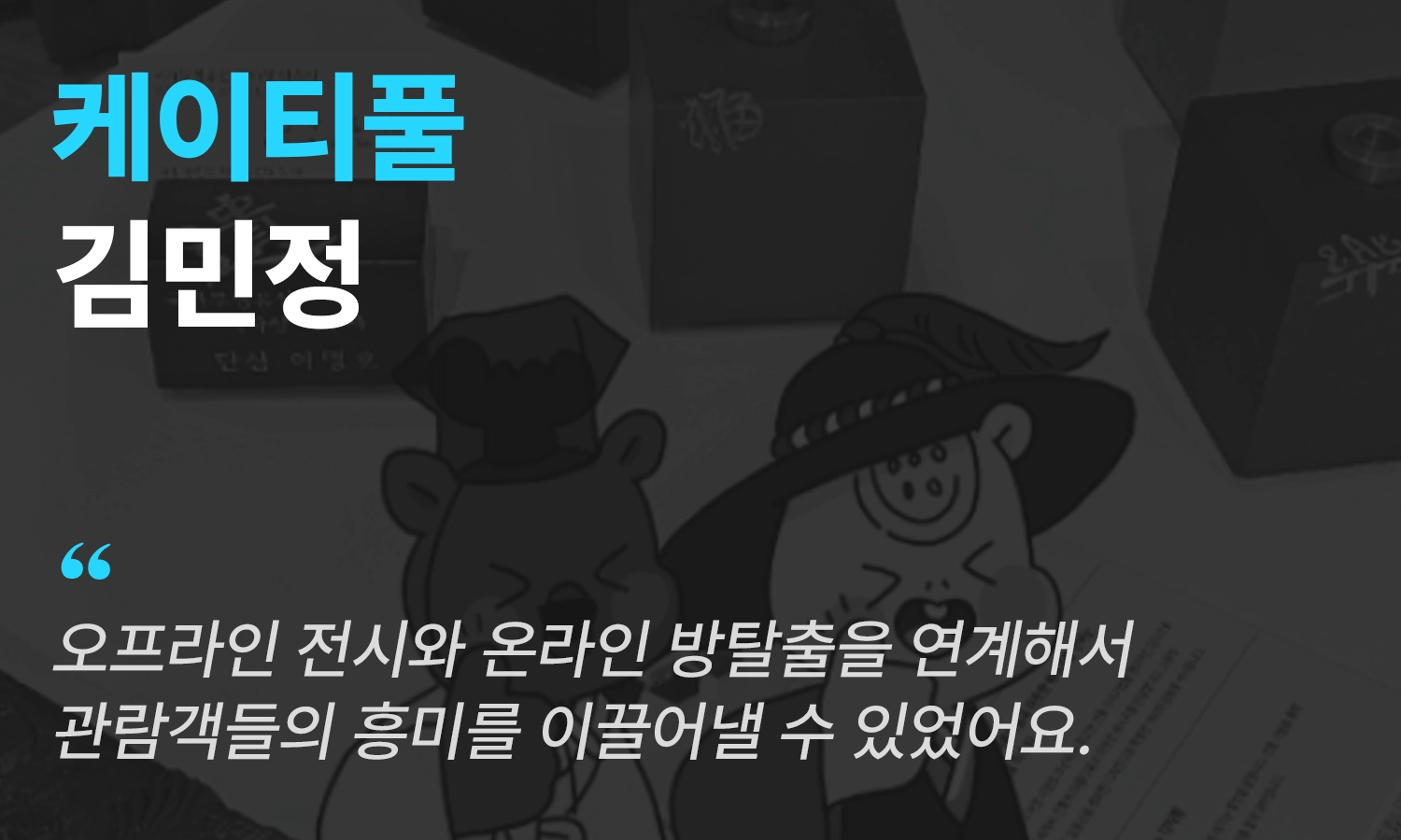 오프라인 전시에 재미를 더하고, 관람객들과의 소통을 위해 온라인 방탈출 콘텐츠를 활용하셨다고 합니다!