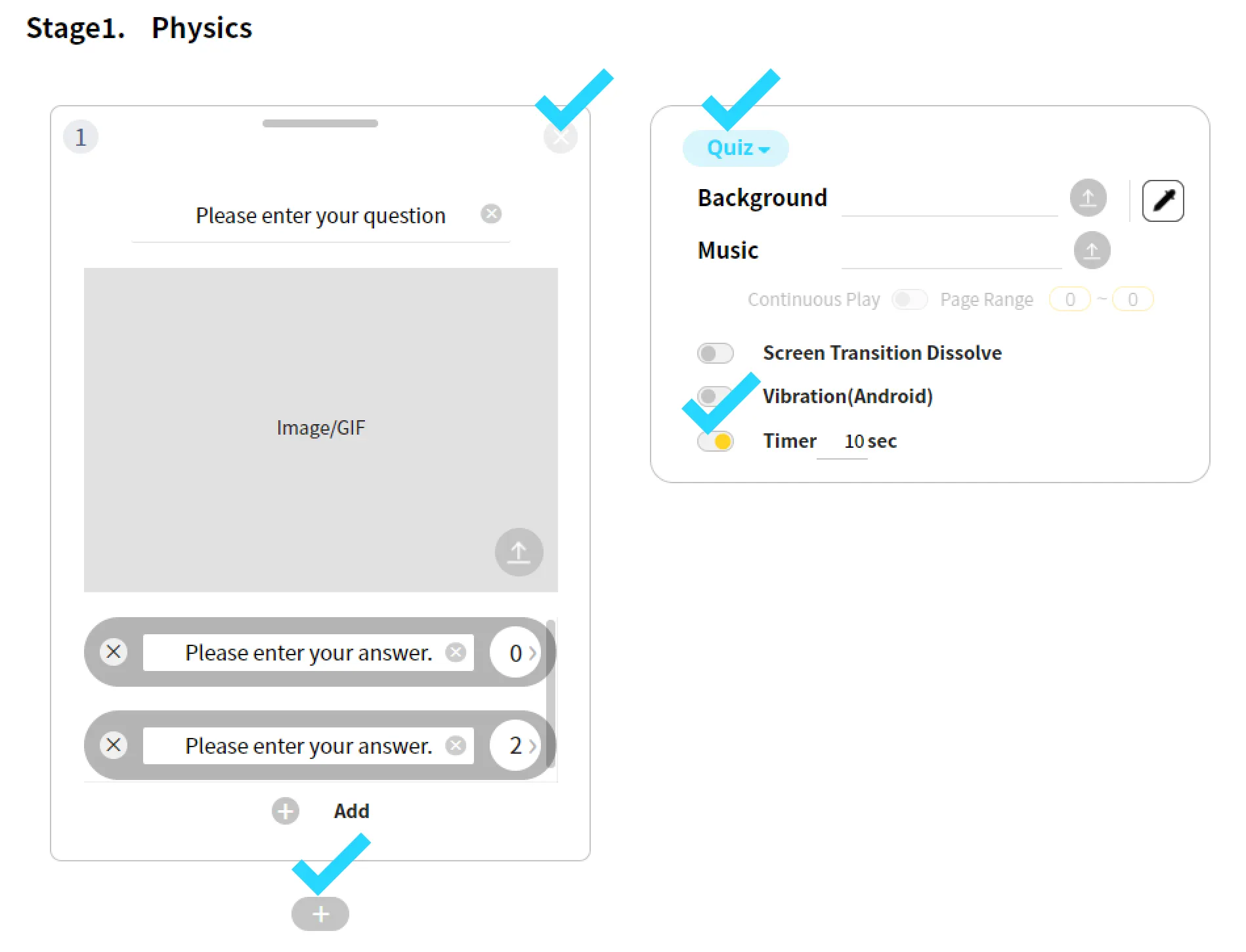 In this step, you can design the very first page of the test. Select features(sharing button, display the most types button, etc) to make your test shine even more!