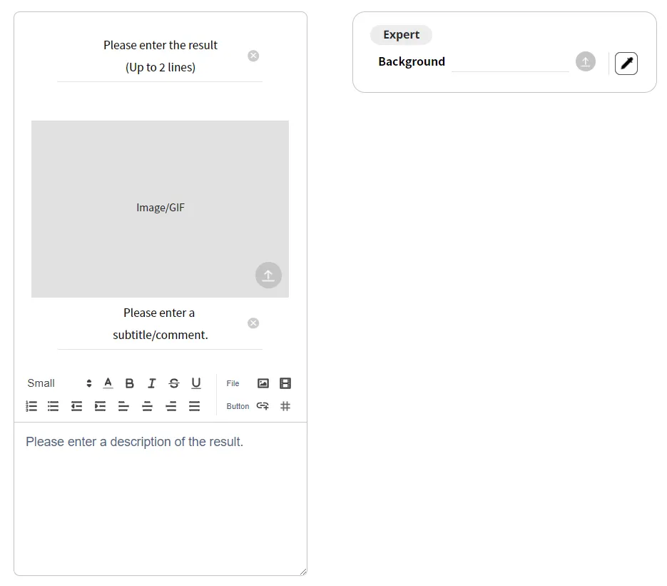[Results] Recommended Ratio : W/H 1:1 ~ 5:3 Specification : Width 300px or more Size : 3MB or less