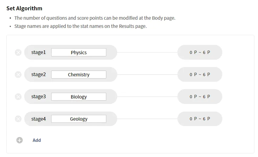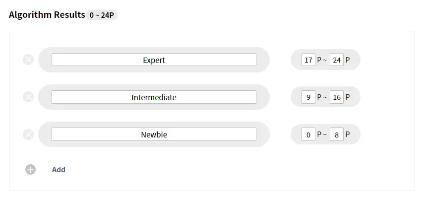 By clicking the button to the right of the answer, you can set the score(algorithm) for each answer.