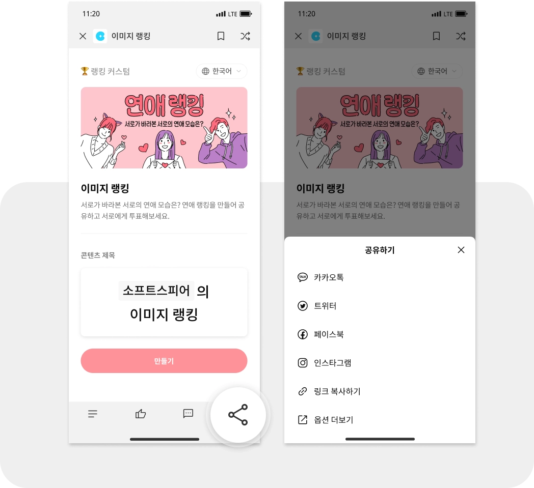 a. 개별 콘텐츠 화면 하단 공유 버튼 클릭