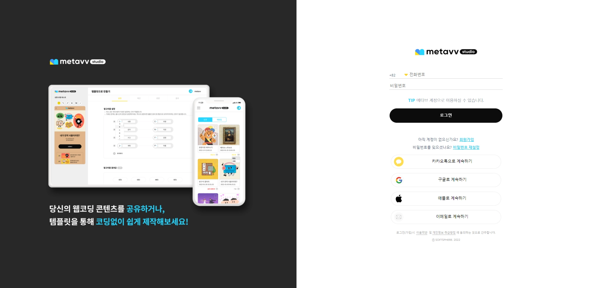 메타브 스튜디오에 로그인합니다.